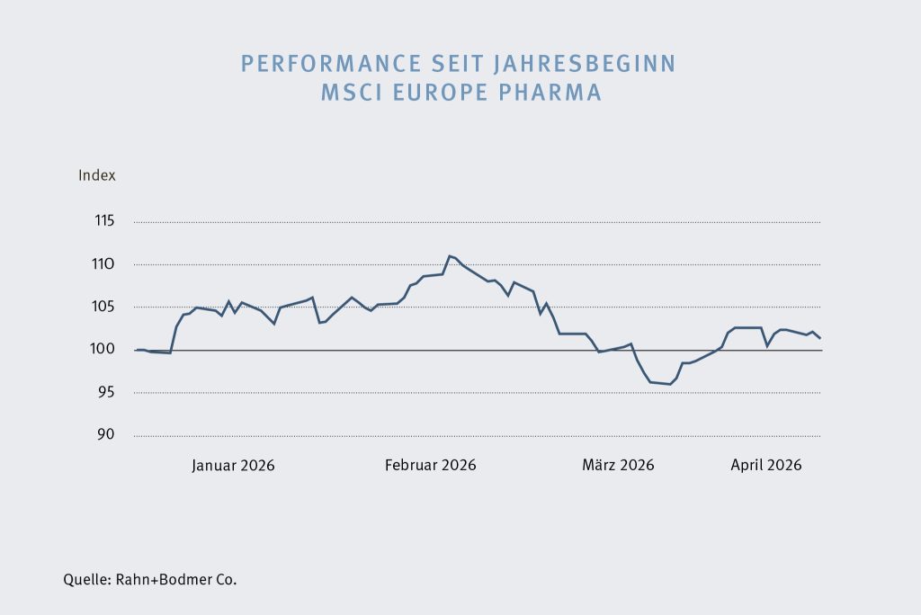 Zu sehen ist dies auch am Kursverlauf vom MSCI Europe Pharma Index. Dieser bewegt sich seit der Ankündigung am 2. April in etwa seitwärts.